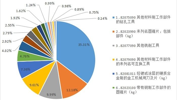 附加说明:海关数据是根据海关进出口商品编码进行分类,与行业习惯分类不完全一致。文中所列产品可能未完全包括所有的工具产品,也可能包括了不属于工具行业的产品。在计算产品单价时,圆锯片、刀片、带锯条的单位采用公斤(kg),其它类产品以件为单位。进口来源地中“中国”指“中国境内保税区”。