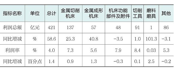 表2 2025年机床工具行业及主要分行业的利润总额、利润率情况