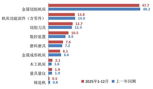 表1 2025年机床工具行业及主要分行业的营业收入情况