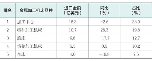在国内中高端机床工具产品需求增长的拉动下,机床工具产品进口小幅回升,实现1.4%的增长,扭转了下降的趋势。