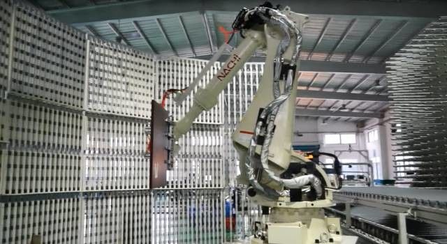 板材从柔性生产线加工完成,再经过清洗、质检和分拣、然后把尺寸正确、品质合格、同一订单所含的板材集合到一起,打包发运给客户,机器人的使用还让索菲亚在板件分拣的工序中减少了80%的人力成本。